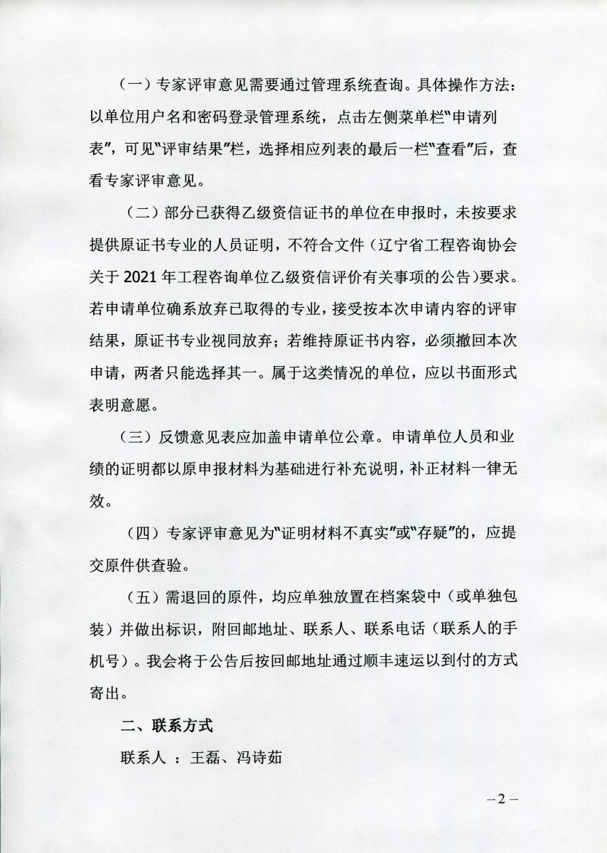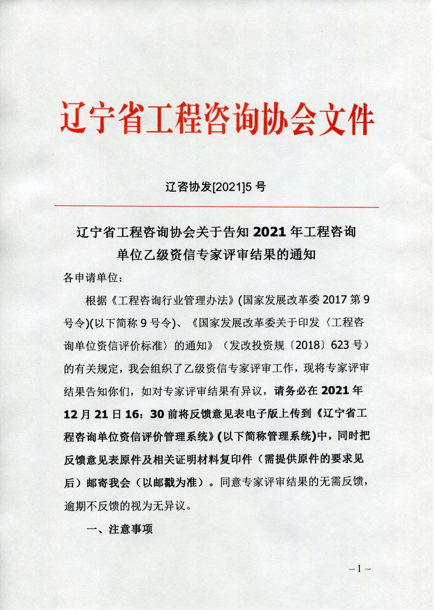 遼寧省工程咨詢協會關于告知2021年工程咨詢單位乙級資信專家評審結果的通知