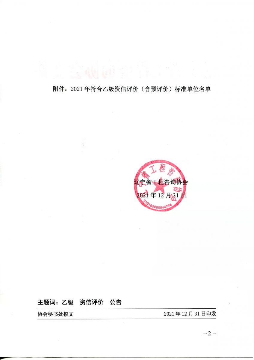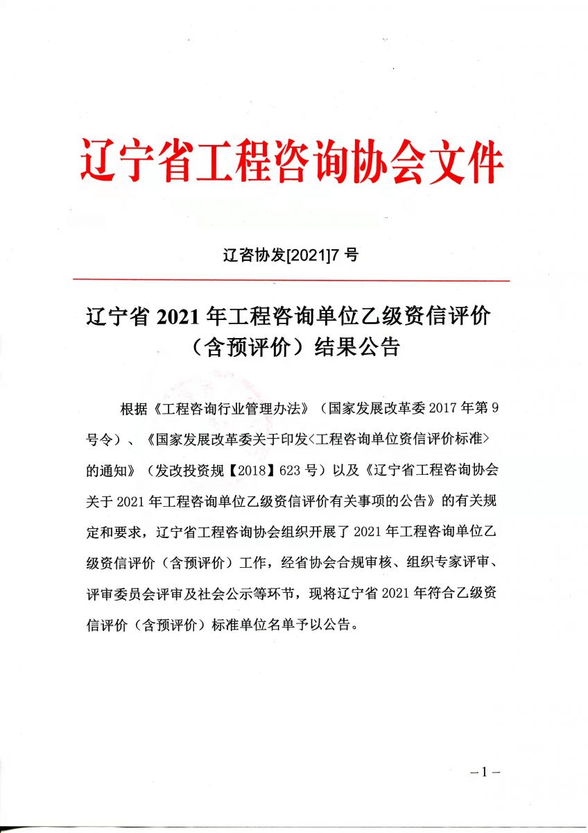 遼寧省2021年工程咨詢單位乙級資信評價(含預(yù)評價)結(jié)果公告