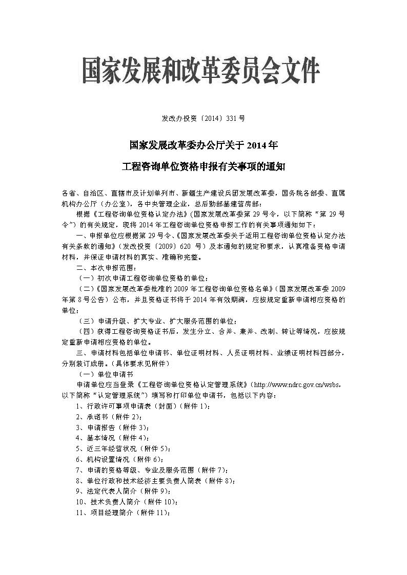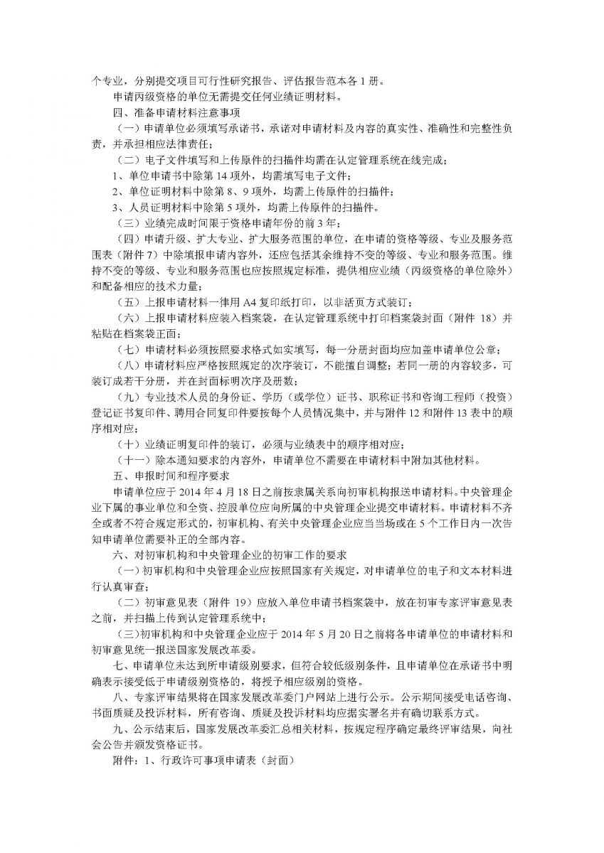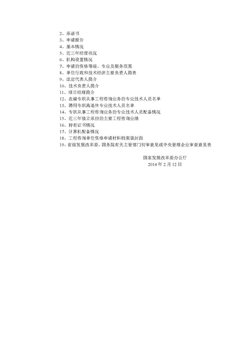 國家發改委辦公廳關于2014年工程咨詢單位資格申報有關事項的通知