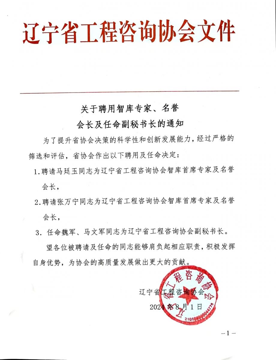 關于遼寧省工程咨詢協會 各部門負責人職務任命的通知