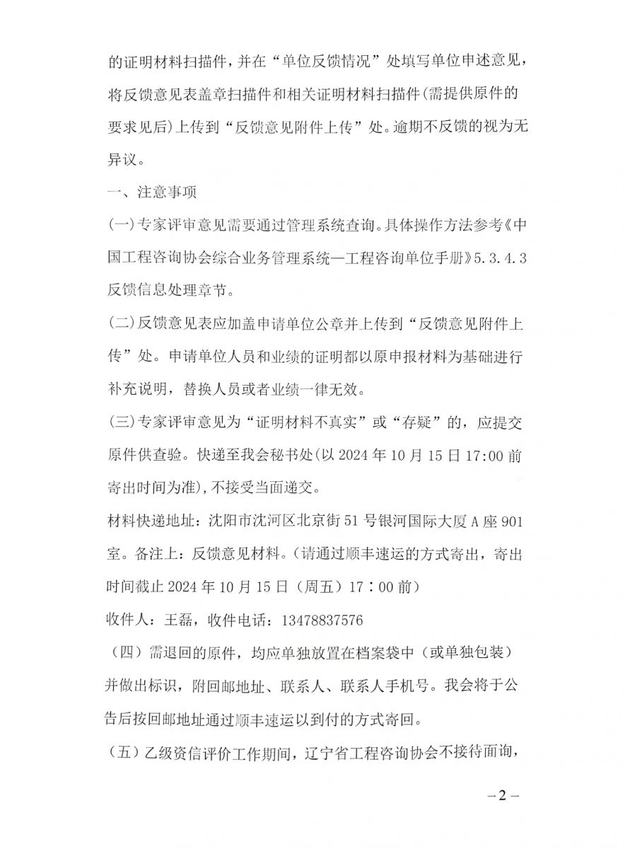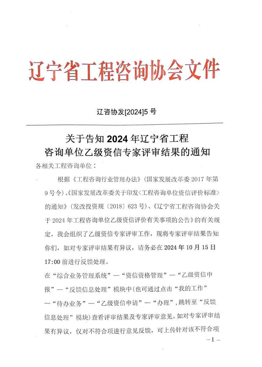 關(guān)于告知2024年遼寧省工程 咨詢單位乙級(jí)資信專家評(píng)審結(jié)果的通知