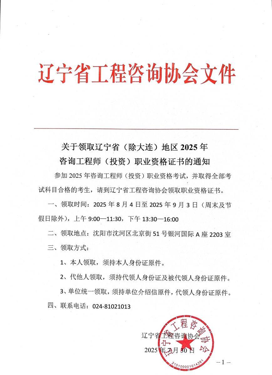 2025年咨詢工程師(投資)職業(yè)資格證書的通知