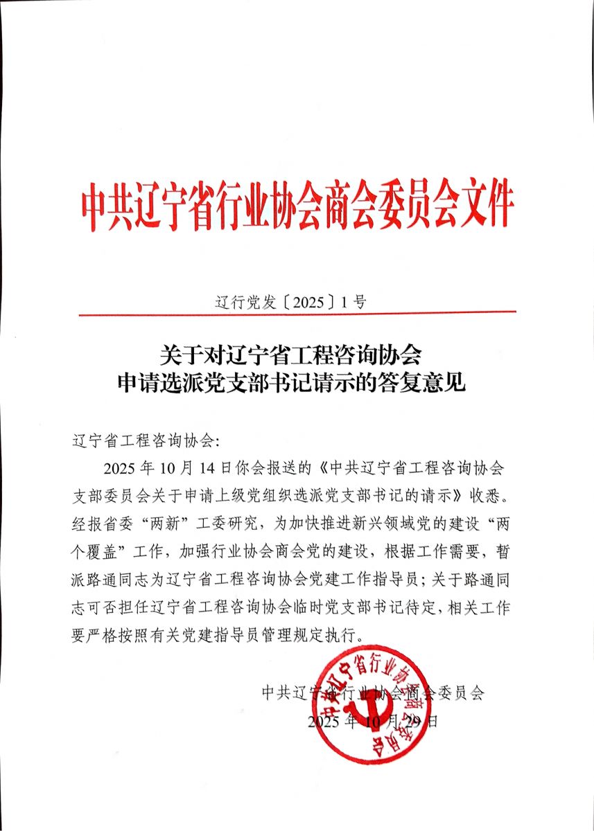 關于對遼寧省工程咨詢協會申請選派黨支部書記請示的答復意見