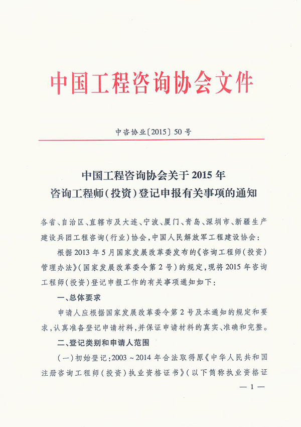 中國工程咨詢協會關于2015年咨詢工程師(投資)登記申報有關事項的通知
