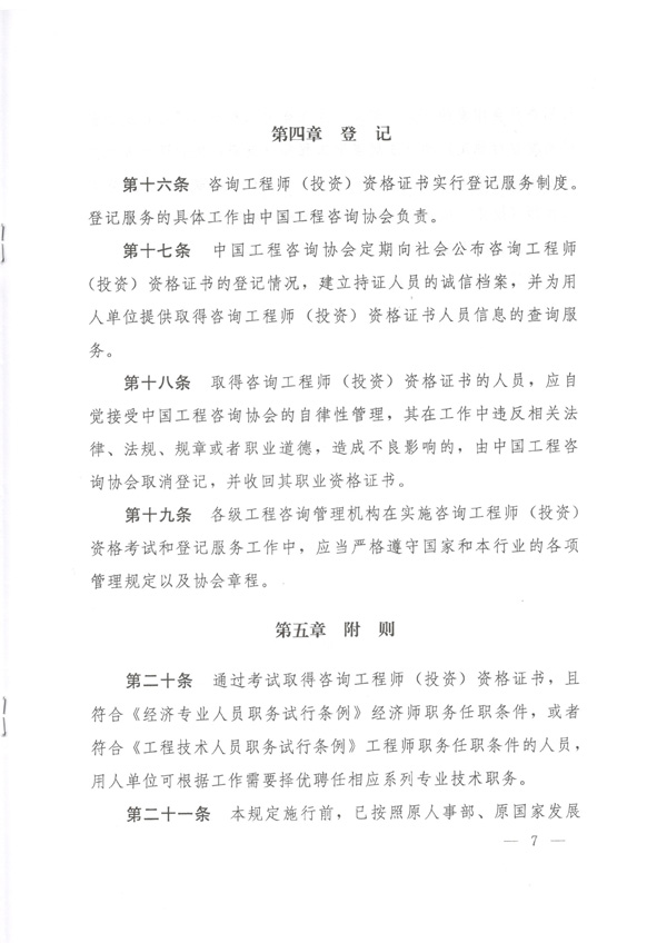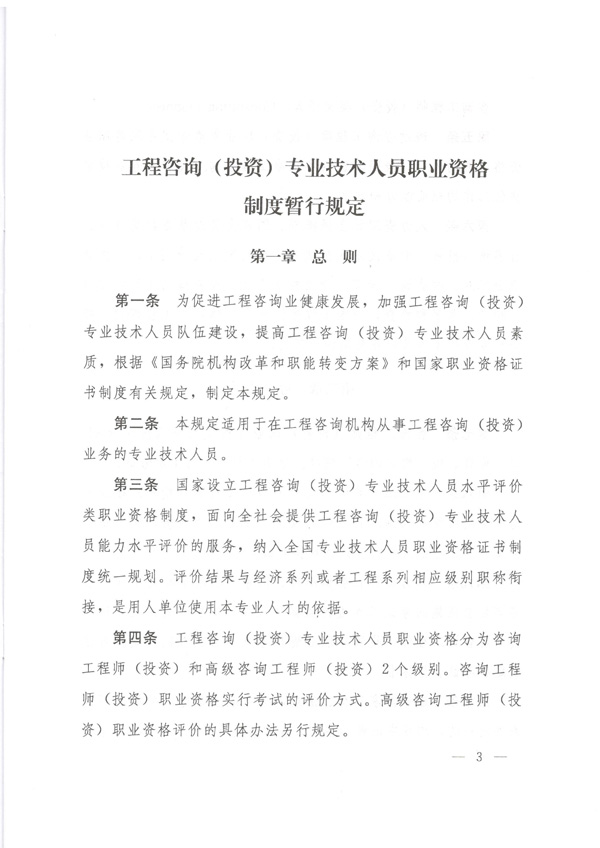 中國工程咨詢協會轉發人力資源社會保障部國家發展和改革委員會關于印發《工程咨詢(投資)專業技術人員職業資格制度暫行規定》和《咨詢工程師(投資)職業資格考試實施辦法》的通知