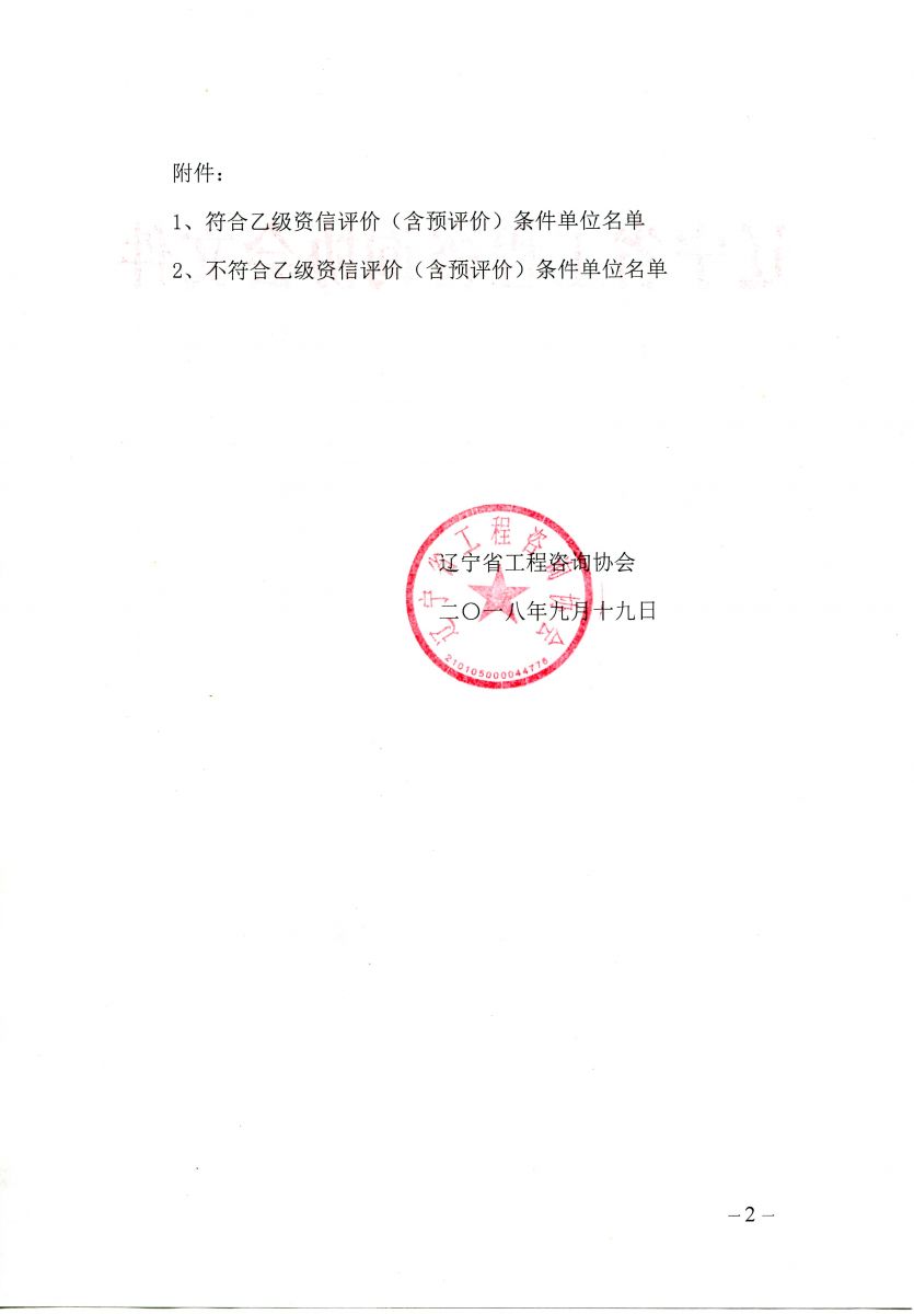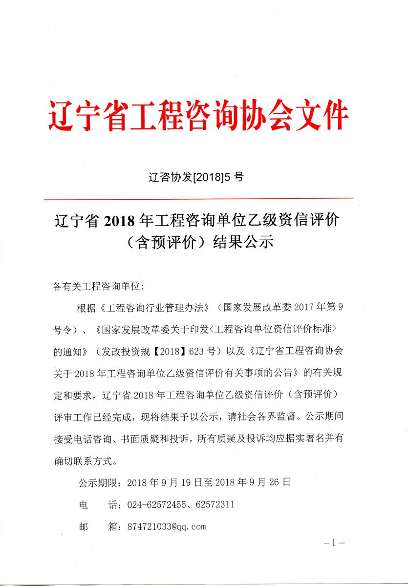 關于2018年遼寧省工程咨詢單位乙級資信評價結果的公告