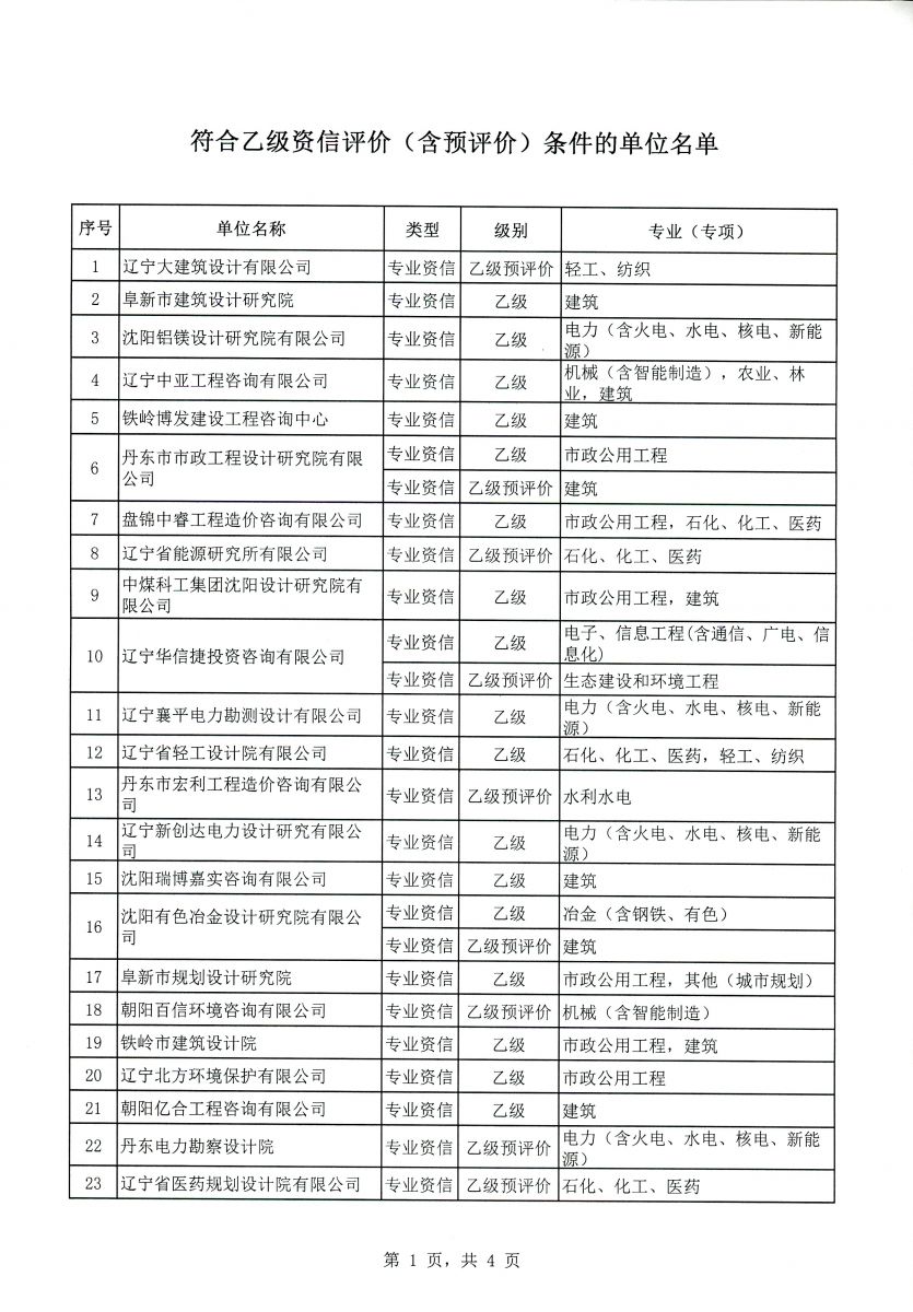 遼寧省2018年工程咨詢單位乙級資信評價(含預評價)結果公示