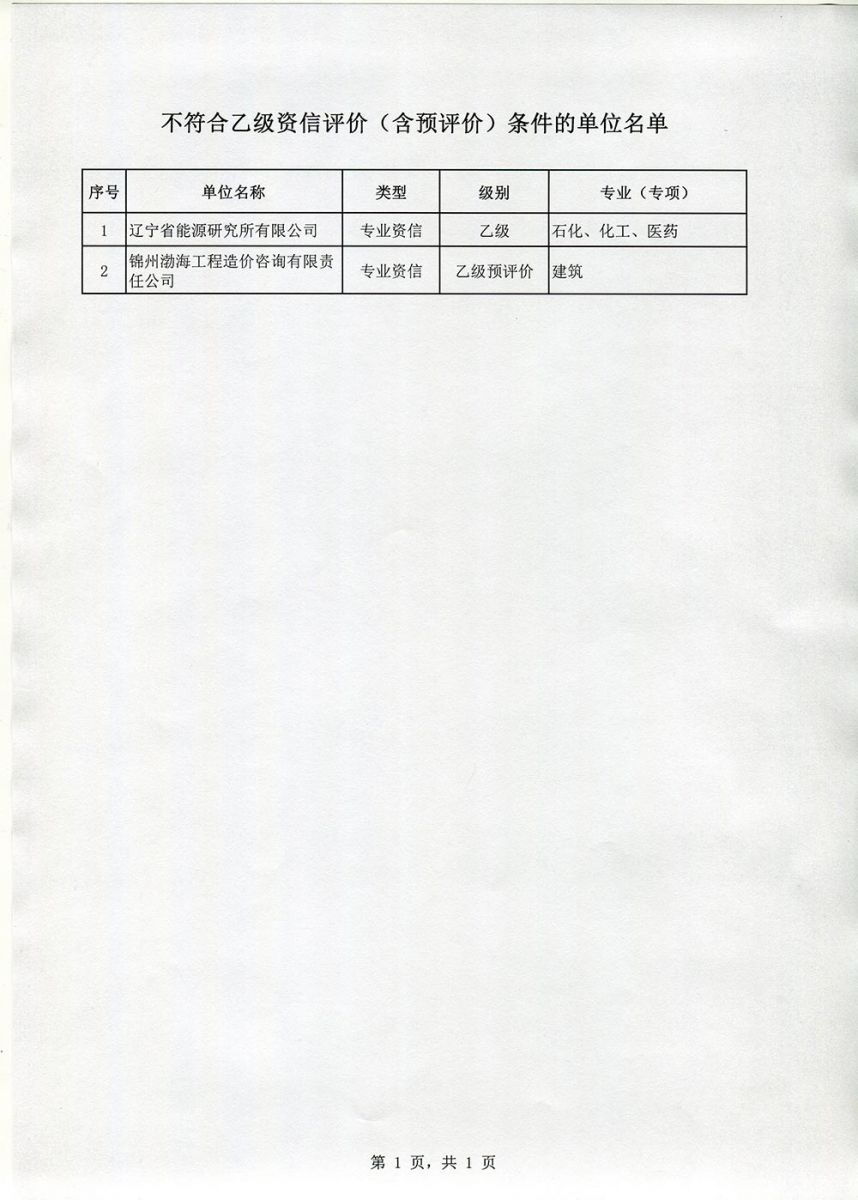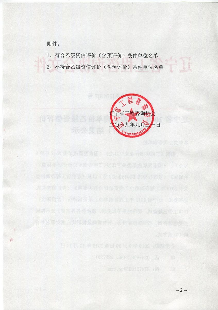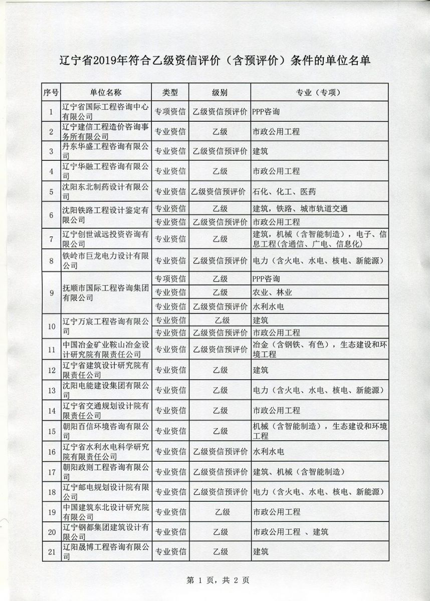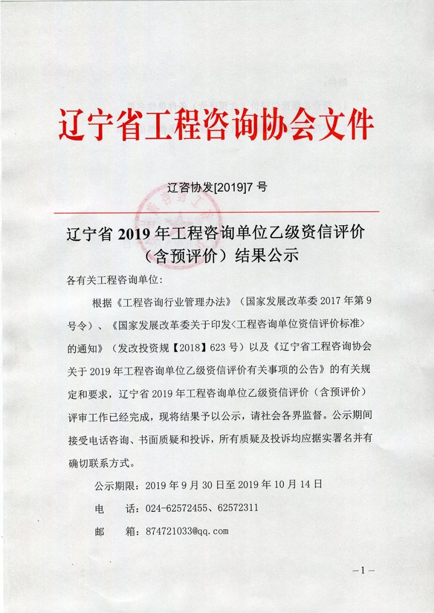 遼寧省2019年工程咨詢單位乙級資信評價(含預評價)結果公示
