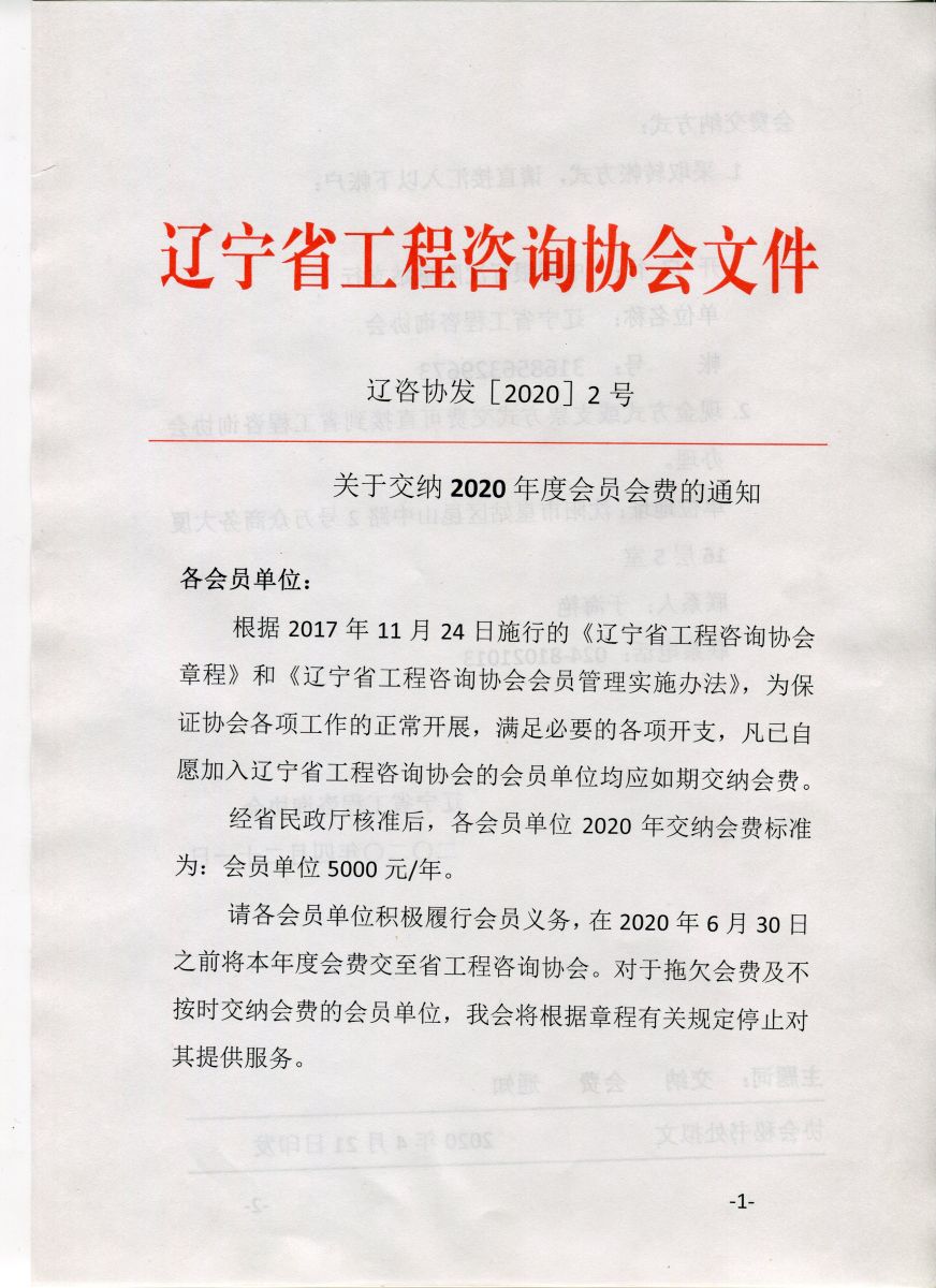 關(guān)于交納2020年度會(huì)員會(huì)費(fèi)的通知