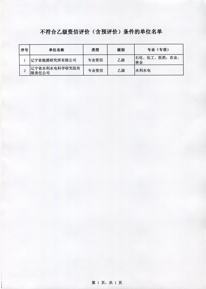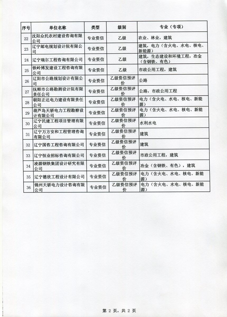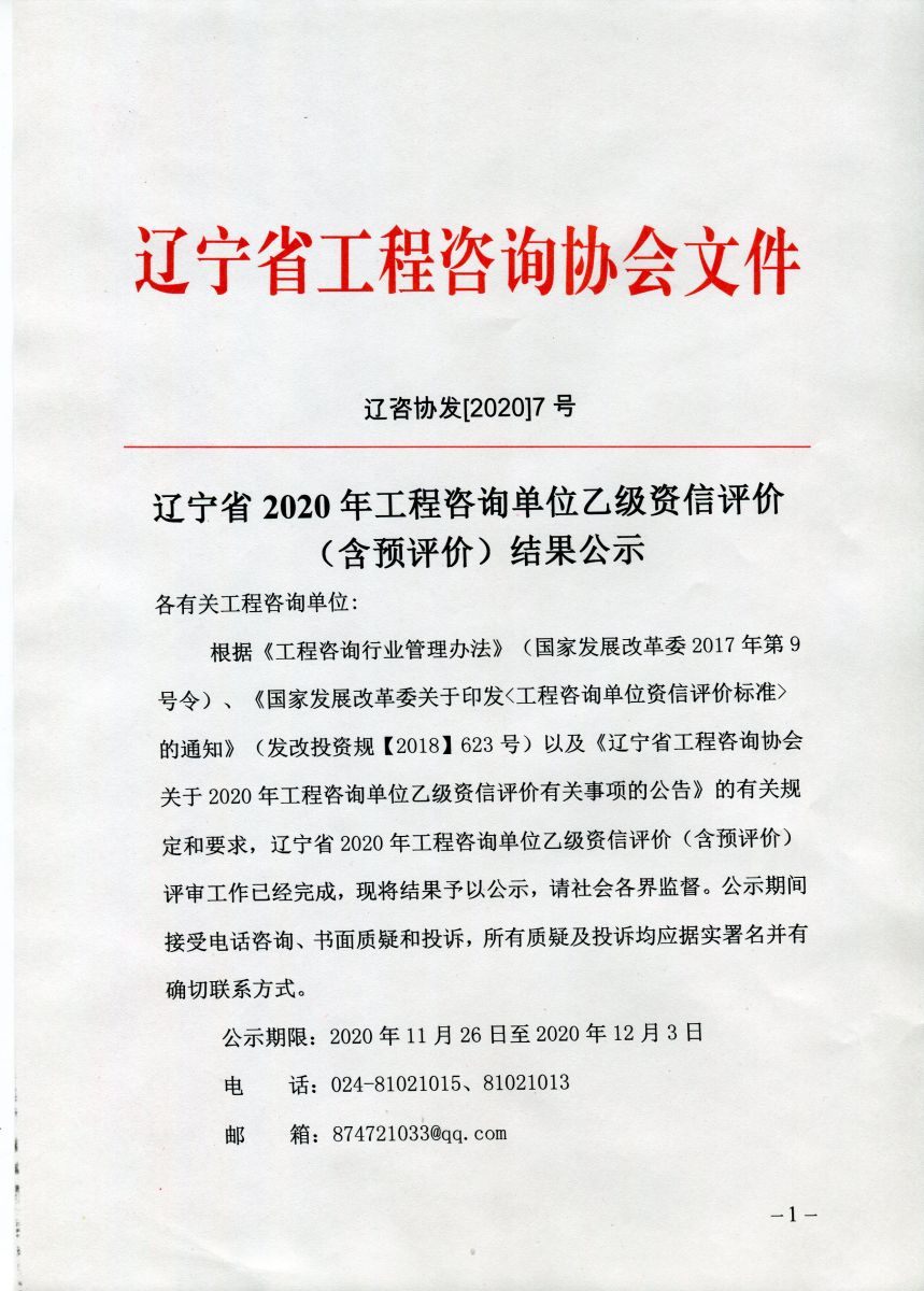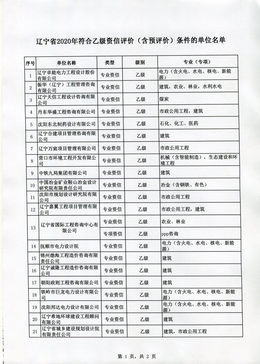 遼寧省2020年工程咨詢單位乙級資信評價 (含預評價)結果公示